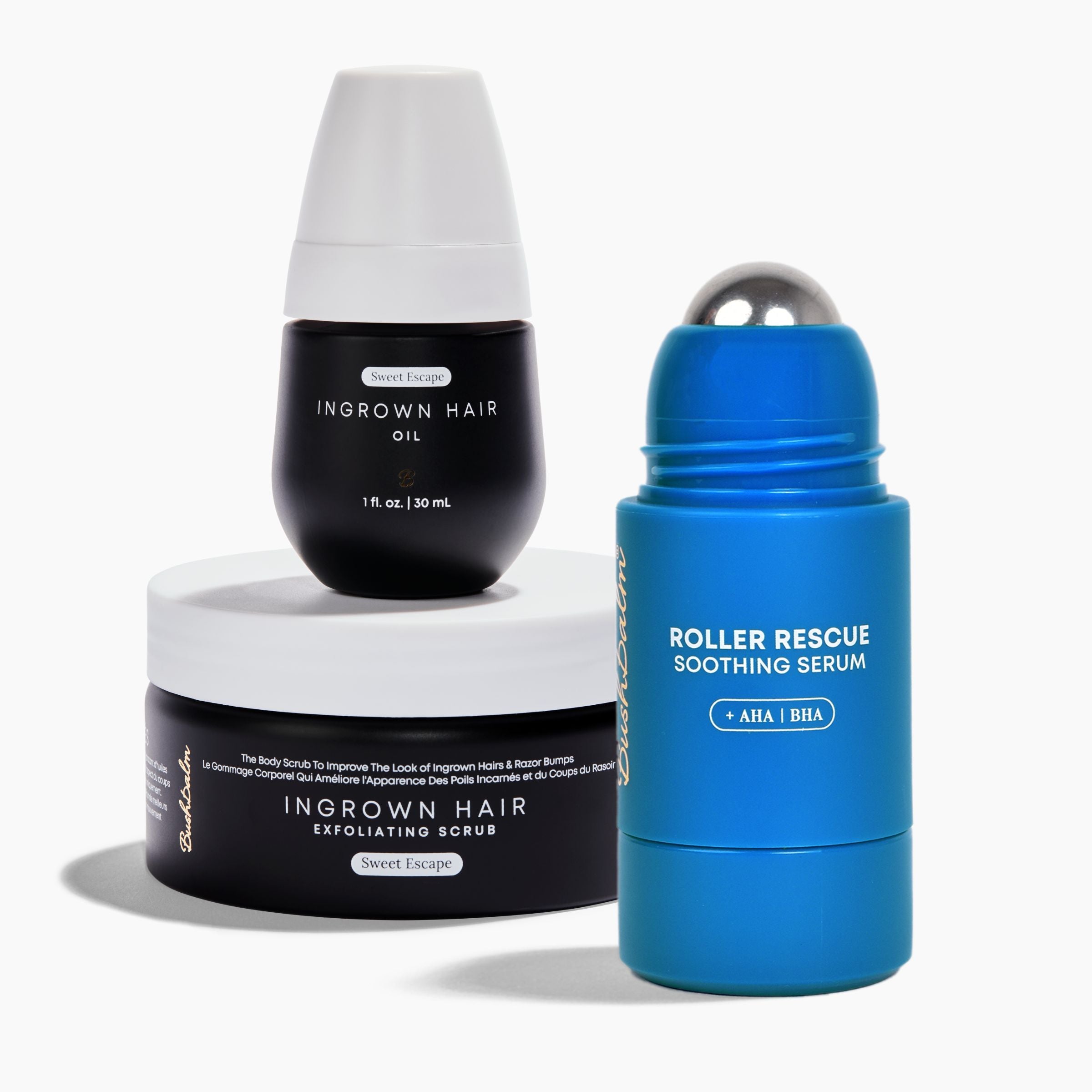 Say hello to soothing self care down there and everywhere with the Scented Ingrown Hair Minimizer Kit.